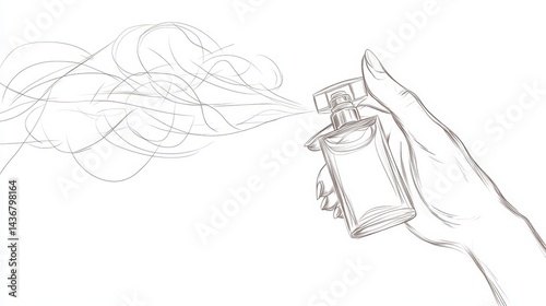 One-line drawing of a hand spraying perfume. Calm scent concept for fragrance ads.