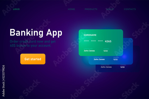Online banking app website page template with isometric credit cards illustration,