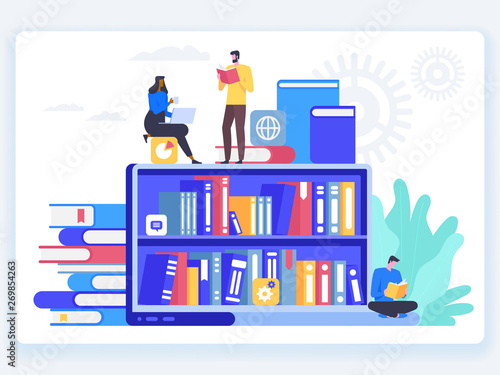 Online education concept. E-learning, distance courses, tutorials vector illustration.