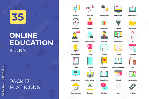 Online education Flat Icons Collection. Set contains such Icons as book, online learning, student, and more.