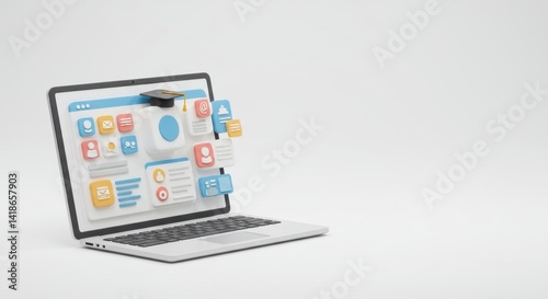Online Education Platform E-learning Digital Course Graduation Modern Technology Laptop