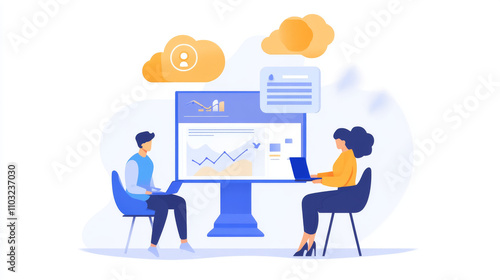 Online internet business conceptual banner. Work in home office and distance collaboration with team through cloud web service. Phone app of digital service management of business on mobile devices.