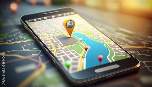 online map navigator application on smartphone interface, idea for transportation technology, Generative Ai