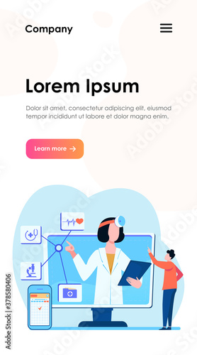 Online medical assistance vector illustration. Man using smartphone app for consulting doctor. Male patient chatting with practitioner on internet