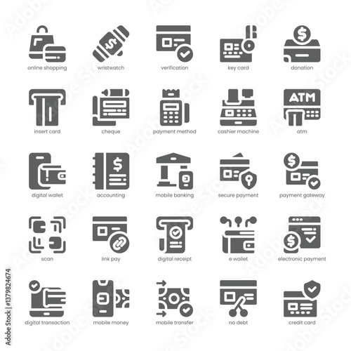 Online Payment Icon pack for your website, mobile, presentation, and logo design. Online Payment Icon solid design. Vector graphics illustration and editable stroke.