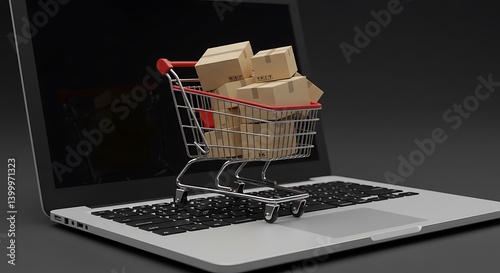 Online Shopping Spree: Digital Cart Overflowing With Packages AI Generated