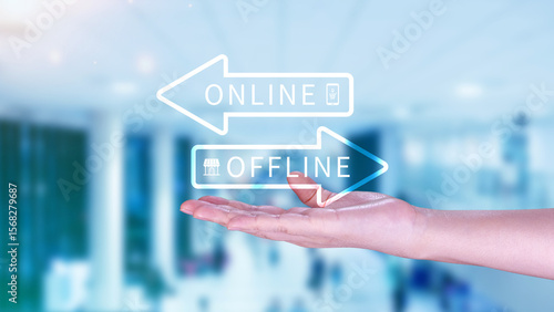 Online vs offline business sales or marketing strategy concept, Transition from offline to online in commerce business.