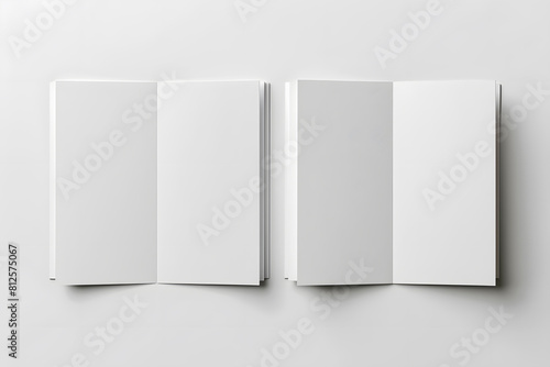 Open and closed blank brochures top view. Mock up. Generative Ai.