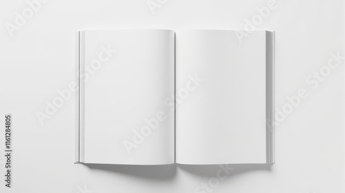 Open blank book on a white background, showcasing empty pages ready for text or illustrations