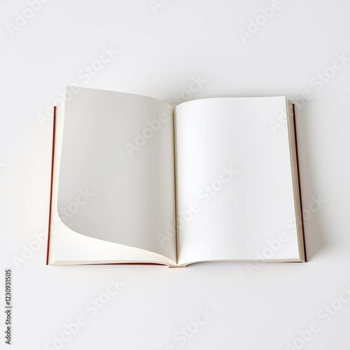 Open Blank Book Pages Clean White Paper Red Cover Mockup Template for Design