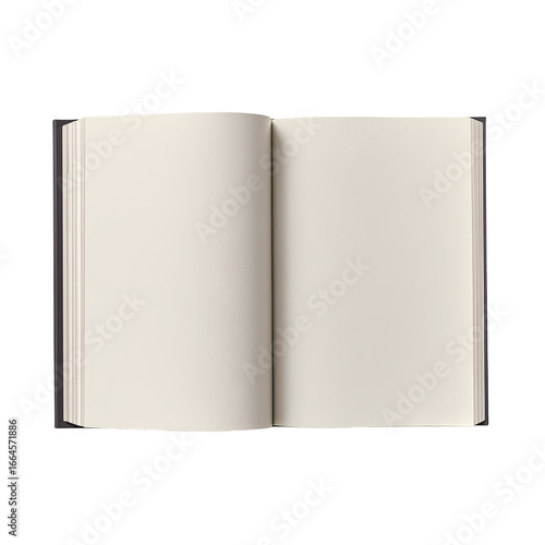 Open blank book with clean, empty pages ready for text or design, perfect for new ideas, creative journaling, or essential note-taking on a pristine white background