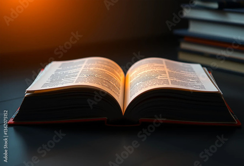 Open book glowing with light, symbolizing magic and wisdom, representing education, literature, and imagination