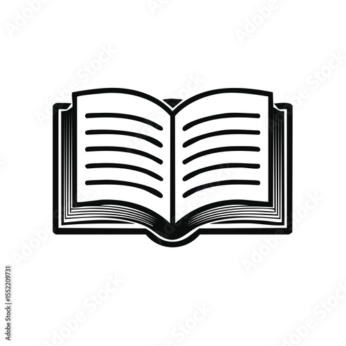 Open book icon, flat line style for print and web design, education and reading concepts, simple design
