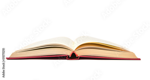 Open book on a white background.