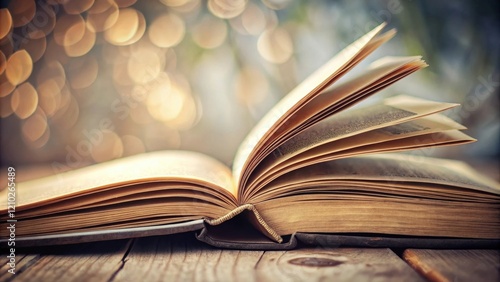 Open book on wooden surface with warm bokeh background, inviting exploration of knowledge and wisdom