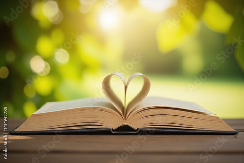open book with a heart shaped pages on a table