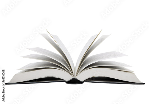 Open Book with Fanned Pages and Black Cover Against White Background, Symbolizing Knowledge, Curiosity, and Timeless Literature