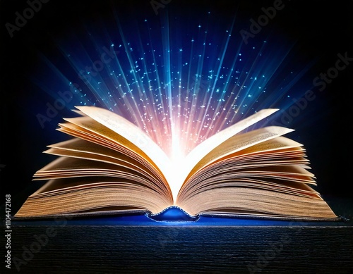 Open Book with Glowing Pages: Symbol of Learning and Creativity