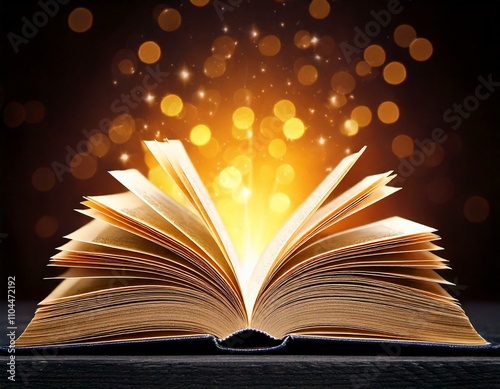 Open Book with Glowing Pages: Symbol of Learning and Creativity