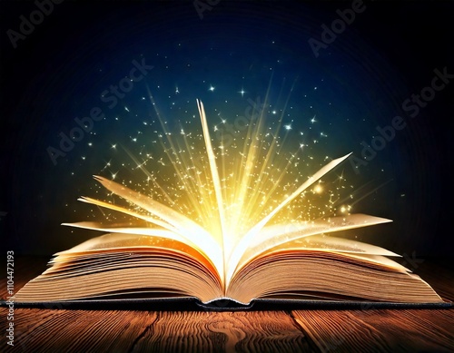 Open Book with Glowing Pages: Symbol of Learning and Creativity