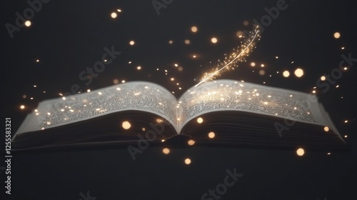 Open book with magical sparkles emanating from its pages