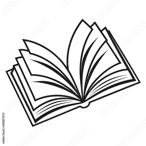 Open Book with Pages Turning Line Art on White Background reading turning pages