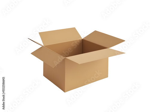 Open cardboard box: An open cardboard box with top flaps stands ready, full of potential, PNG file