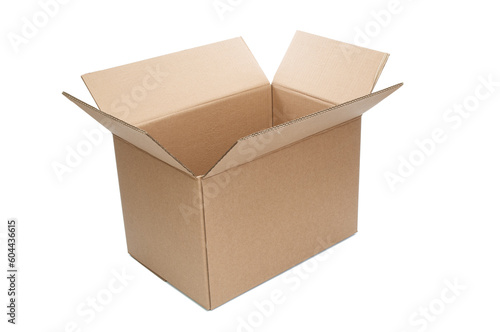 Open cardboard box close up isolated on white background