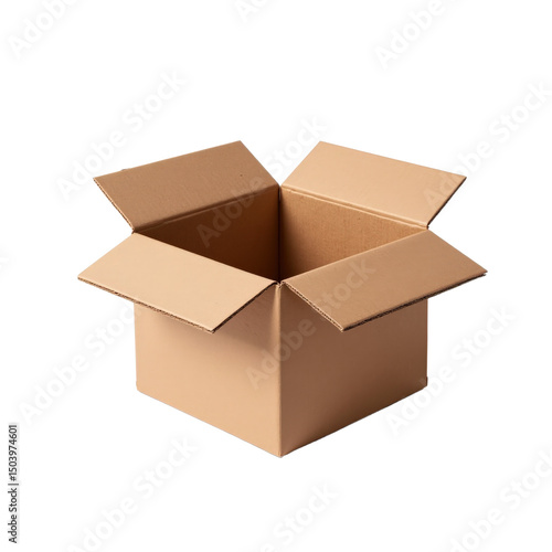 Open cardboard box for packaging on a black background, ready for your design, minimalist style.