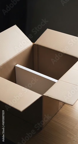 Open cardboard box isolated on dark background