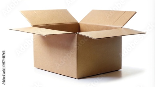 Open cardboard box isolated on white background, packaging, delivery, shipping, container, unpacking, storage