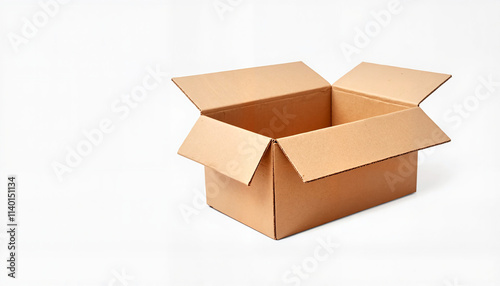 Open cardboard box on white background with copy space for storage and shipping needs