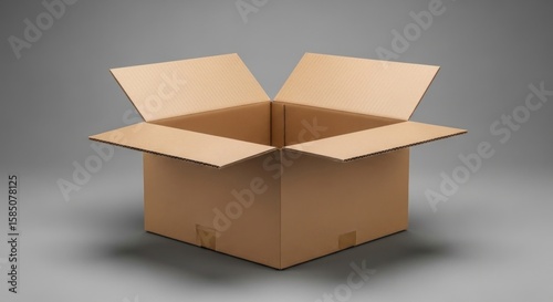 Open cardboard box ready for packing and shipping, a versatile container for storage, moving, or delivery needs, showcasing its empty interior and sturdy construction.