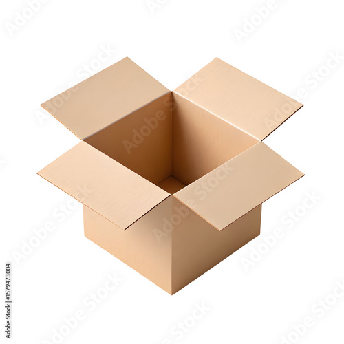 Open cardboard box with flaps spread wide isolated on transparent background