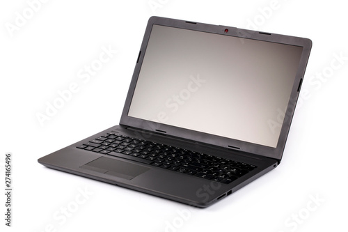 Open gray laptop on a white background