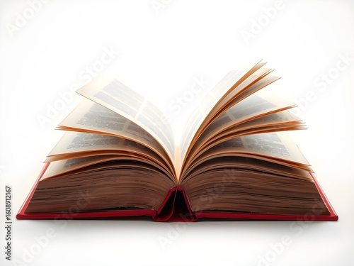 Open Hardcover Book with Fanned Pages on White Background, Ideal for Education, Knowledge, and Learning Concepts