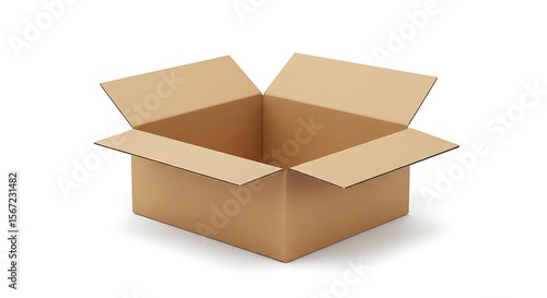 Open Kraft Cardboard Shipping Box on White Background – Packaging Mockup