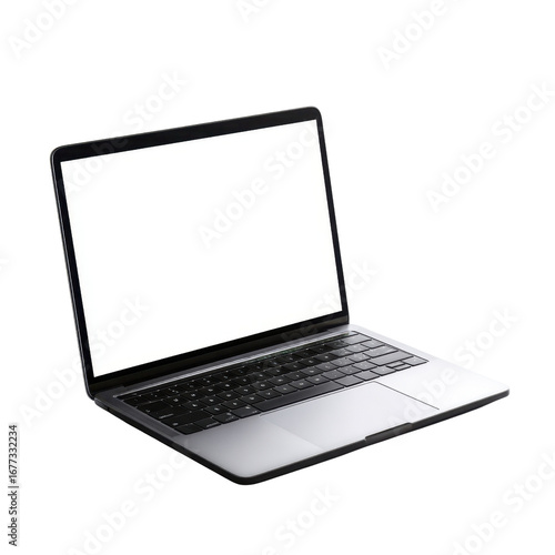 Open Laptop on a White Background Ideal for Technology or Business Related Projects and Presentations