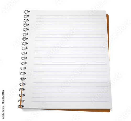 Open lined notebook. Ring binder notepad. Mockup notebook with blank sheets of paper. Copy space, place for text. Back to school. 3D render, 3d Illustration. Isolated on white background
