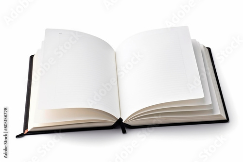 open notebook with white sheets on a white background
