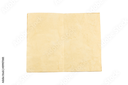 open old vintage book isolated on white background. Two clean sheet of paper.