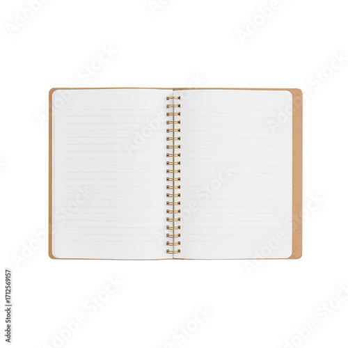 Open spiral notebook featuring clean lined pages against an isolated canvas