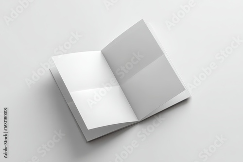 Open White Brochure Mockup on Clean Background, Blank Pages, Folded Paper, Minimalist Design