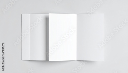 Open white tri-fold brochure resting on a clean surface showcasing blank pages