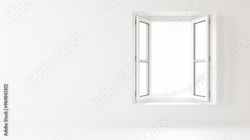 Open white window on plain white wall. Minimalist design with soft natural light creating an airy feel