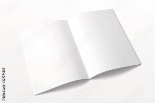Opened magazine or Brochure isolated on white. illustration of blank pages. Mockup template for your showcase.