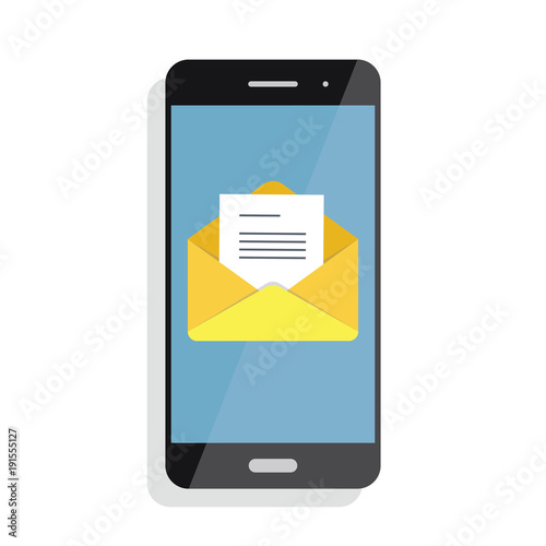 Opening of an incoming email to a smartphone. E-mailing, spam, e-commerce