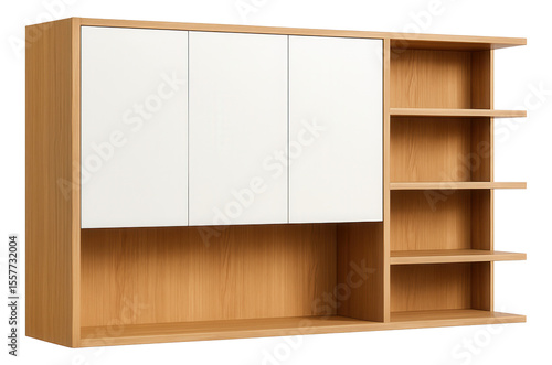 Open-shelf kitchen cabinet set with a mix of closed cabinets and exposed shelves, ideal for displaying decorative items in a contemporary home.