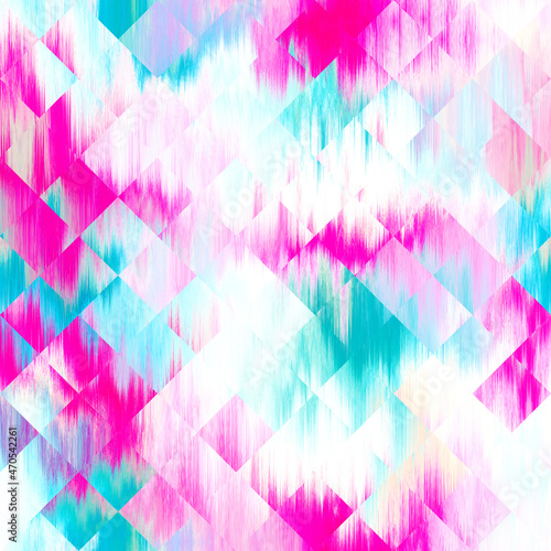 Optical glitch tie dye geometric texture background. Seamless liquid flow effect material. Modern wavy wet wash variegated fluid blend pattern.