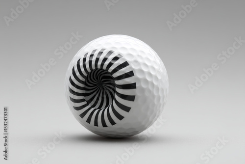 Optical Illusion Golf Ball with swirling black & white design on its surface against a smooth, solid-color backdrop for striking contrast.